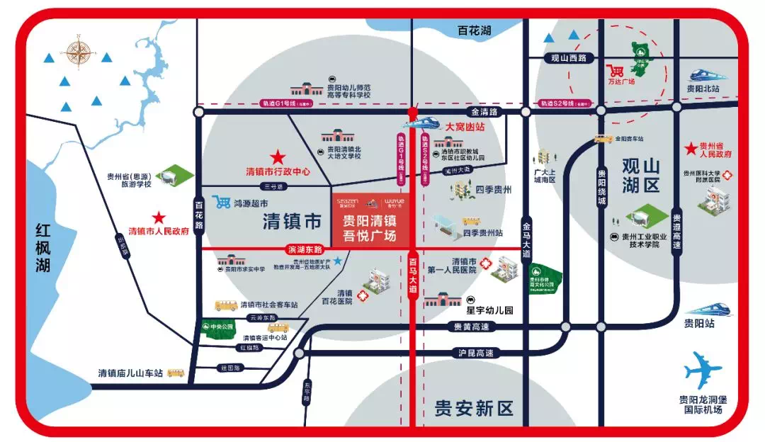 吾悦已至,繁华所向。据悉,贵阳清镇吾悦广场为新城控股布局全国的第89座、入黔的首座吾悦广场。其择址清镇优越中芯区位,以新型体验式商业模式为清镇带来更完善的商业配套服务,变革清镇商业格局,填写大型商业综合体少有,为清镇人民创造全新的吃喝玩乐购一站式生活体验,引领和带动清镇城市高品质发展!