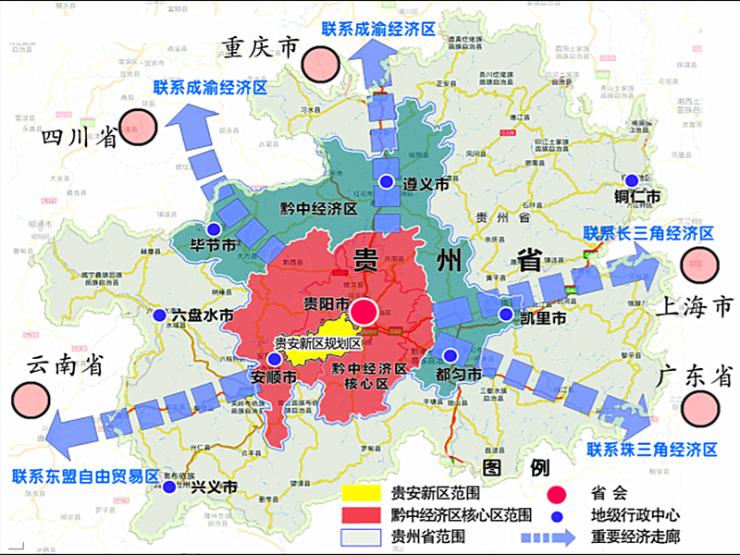 您好,你所看到的是我们贵安新区的整体规划图,贵安新区是从2014年1月6号经国务院批复设立的中国西部五大新区之一,中国第八个高级新区,