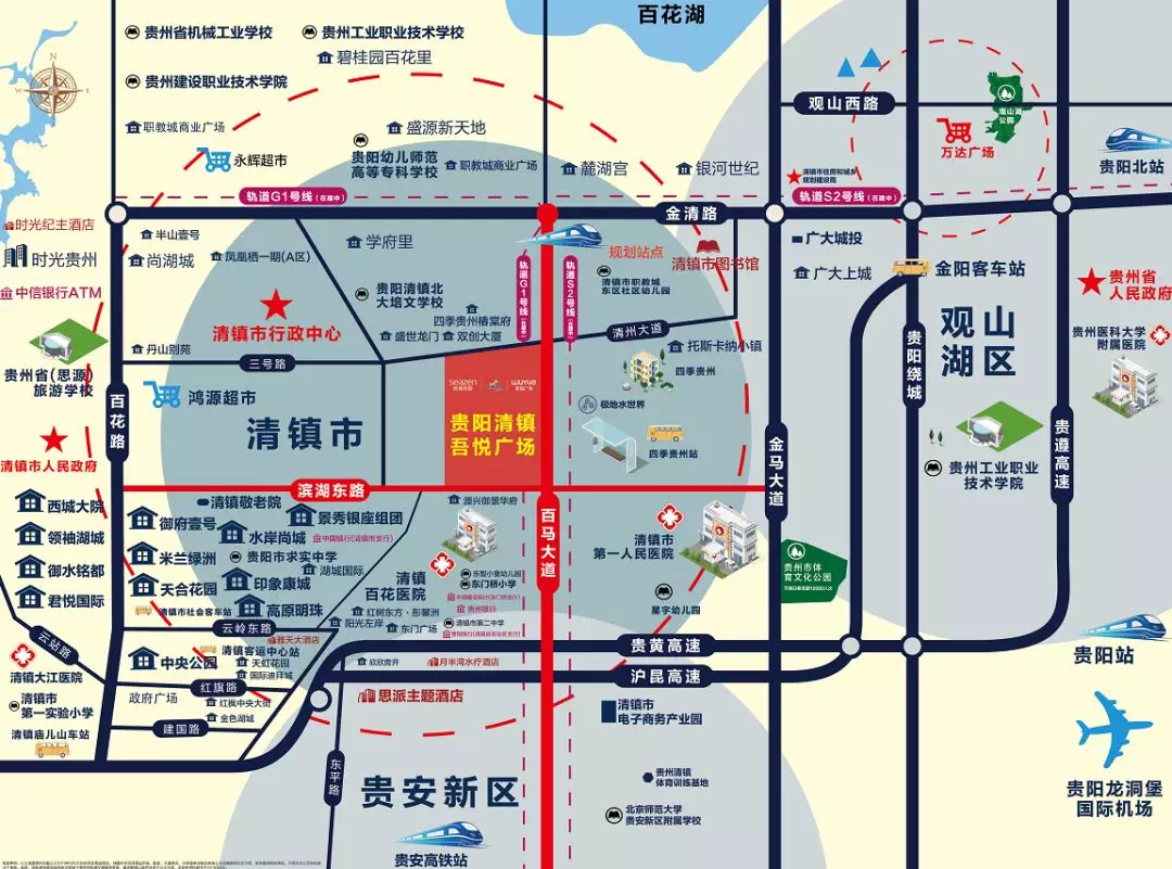 贵阳清镇吾悦广场择址贵阳西向发展要地,雄踞市政发展黄金枢纽,囊括大型购物中心、主题商业步行街、新中式品质华宅等业态。项目以同步世界的前瞻设计理念和开发建造水准,引入300余国家内外优质商家,打造贵阳西真正意义上的体验式旗舰综合体,填补贵阳西全业态体验式商业少有,升级区域居民的消费品质,成为城市新的商业名片。
