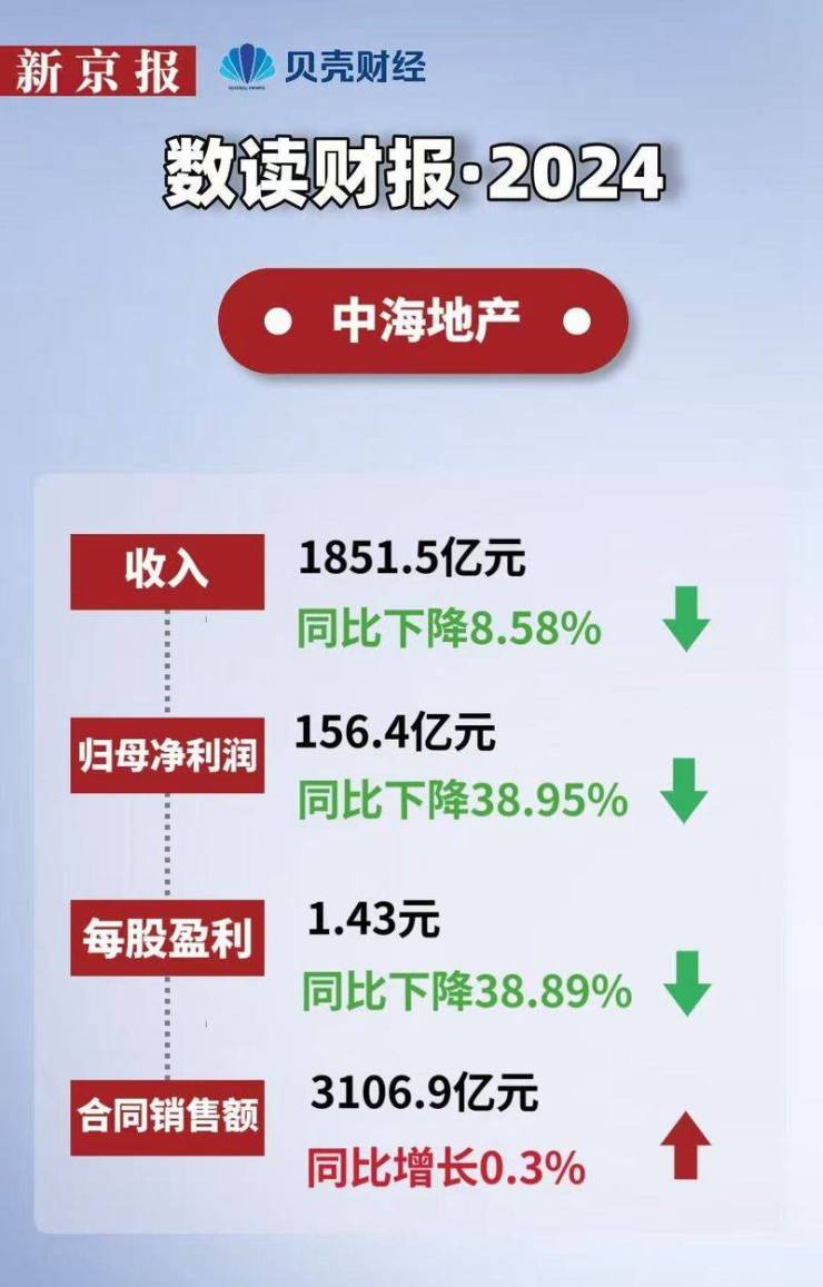 从中海发布的2024业绩报告来看,其不但没有拿回“利润王”的称号,营收、毛利、归母净利润、毛利率、净利率——几乎所有核心财务指标都在同比下滑。不过,现金流依然保有安全垫。