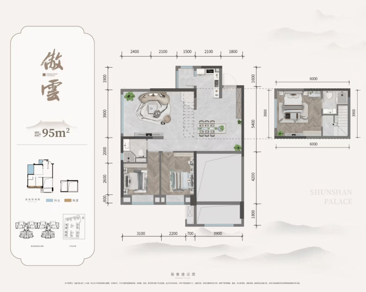 户型设计同样精准把握改善型需求的痛点。就拿目前在售的最小的户型来说,建面约95㎡实际可得约125㎡,动静分区合理,互不干扰;约12米的横厅开间、超40㎡的双厅通透对流,视野开阔无界;最小的次卧面积超过10㎡,空间利用高效;约24㎡的主卧套房带有独立卫浴,尊崇感十足。