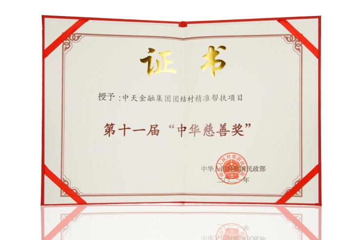 近年中天金融的帮扶足迹遍布遵义、晴隆、赫章、望谟、紫云、关岭、长顺、石阡、台江、凯里、息烽、镇宁、织金等13个市县,先后获颁贵州省“千企帮千村”行动优秀民营企业、中国扶贫基金会“中国民生行动先锋”、“全国‘万企帮万村’精准扶贫行动先进民营企业”等荣誉。2019年,中天金融团结村精准扶贫项目入选国务院扶贫办《中国企业精准扶贫分领域案例》;同年对团结村的扶贫创新实践写入了中共贵州省委十二届三次全会决议,赢得了贵州省委省政府的高度肯定;2021年,中天金融集团获得贵州省委、省政府颁发的贵州省脱贫攻坚先进集体,其扶贫创新实践中所积累的宝贵经验,对后续推进的一系列乡村振兴工作起到了较好的示范作用并具有指导意义。