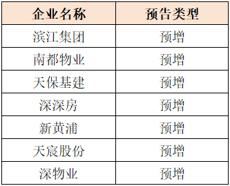 除了上述两家龙头房企外,还有南都物业、新黄浦、天宸股份、天保基建、深深房、深物业6家房地产行业内的企业实现了“预增”。
