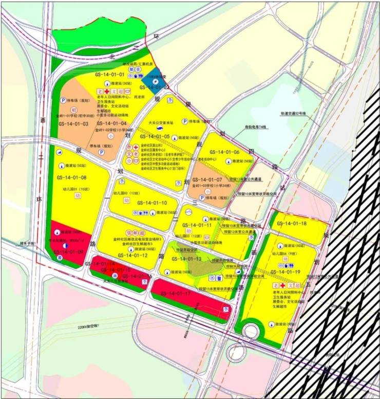 小龙滩片区的公共服务设施正按计划有序推进,涵盖教育、医疗、养老及商业等多个方面: