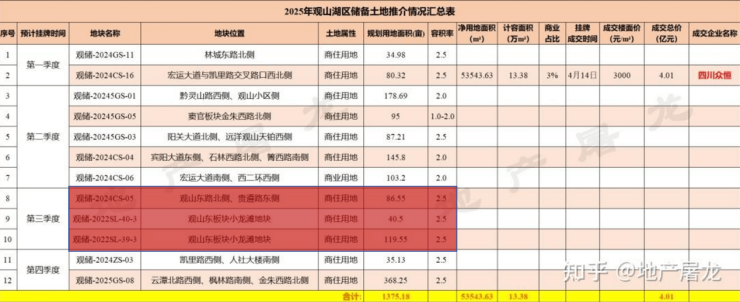 土地出让情况是衡量区域发展潜力的关键指标。自2022年以来,小龙滩片区已完成多宗商住用地出让,吸引贵阳城投、四川众恒、浙江东都等企业参与开发。