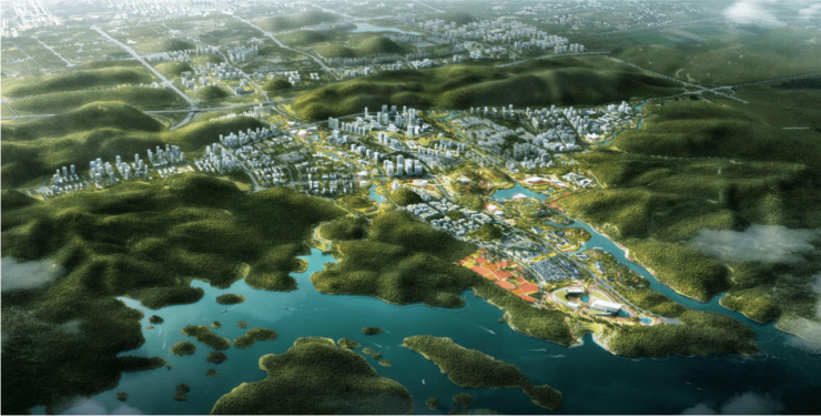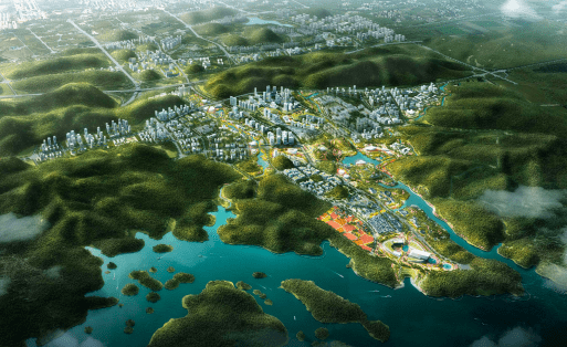 总体定位:以生态文明为核心特色,三生(生态、生产、生活)融合的高端服务集聚区、对外开放新平台。