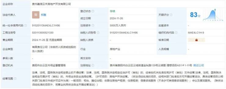至于景融集团,则是在白云区云城街道新设了贵州嘉信云禾房地产开发有限公司。