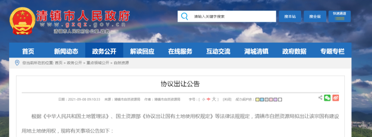 9月8日,据清镇市人民政府官网公示,清镇市自然资源局拟出让境内一宗棚改地块。