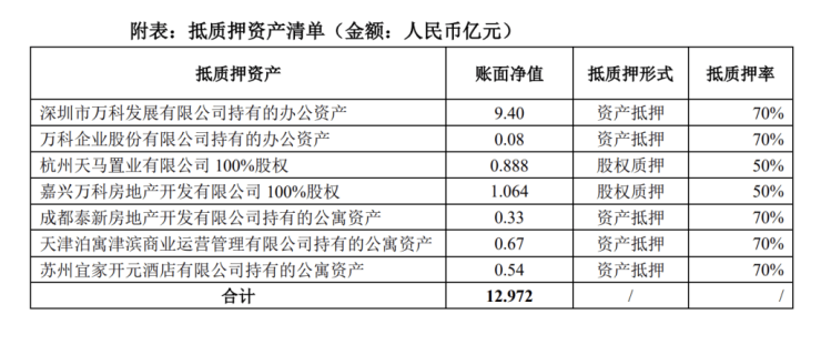 万科则需要以持有的投资性房地产、固定资产的不动产产权和非上市公司股权(统称“抵质押资产”)为本次股东借款提供资产抵质押担保,此次拟提供的抵质押资产价值为不超过人民币12.98亿元。