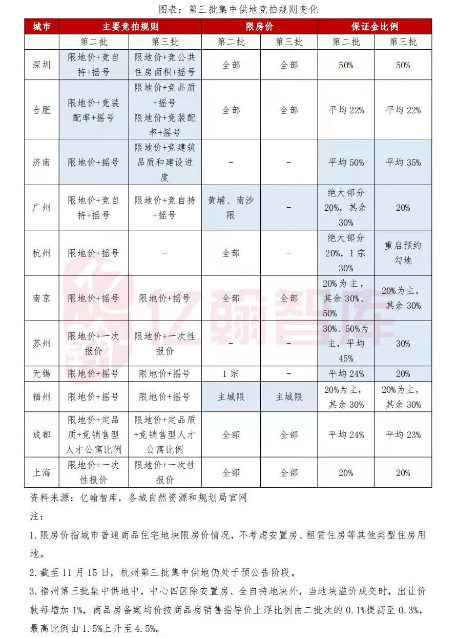 “第三批集中供地的出让门槛和出让条件在维持底线的前提下有一定程度放松,第二批集中供地流拍率高的城市放松幅度更大。这说明各城尤其是第二批流拍率高的城市,在既定的规则框架和自身承受能力范围内,正在努力优化出让规则,尽量避免大幅流拍。”亿翰智库分析人士称。