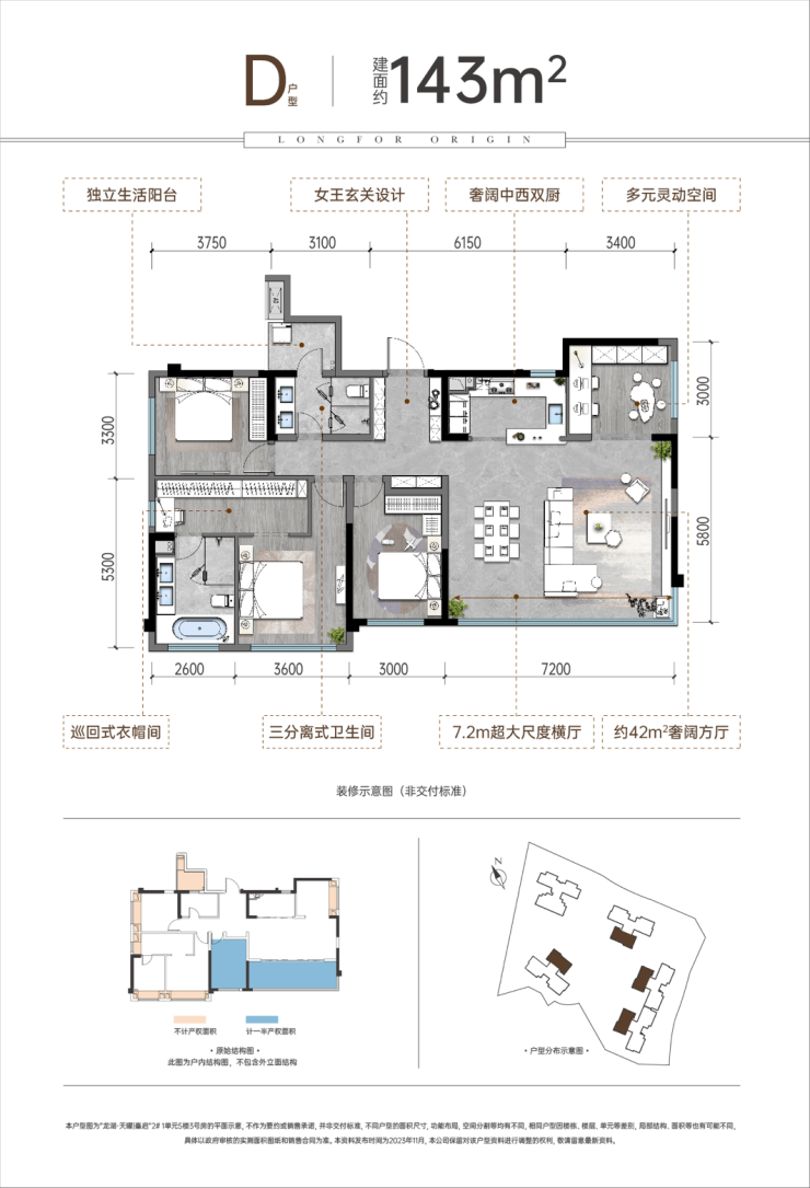此外,建面约143㎡王牌户型首次公开,无论是恢弘大气的女王玄关,还是主卧套房的洄游式衣帽间,都是贵阳市场前所未见的奢宅配置。如此创新力度,不仅超越了龙湖自身,更全新书写了世界CBD新奢生活贵阳范本。