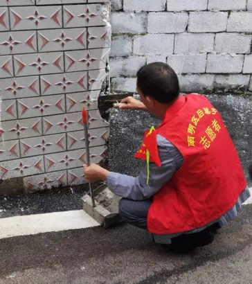 志愿者在修补损坏墙体