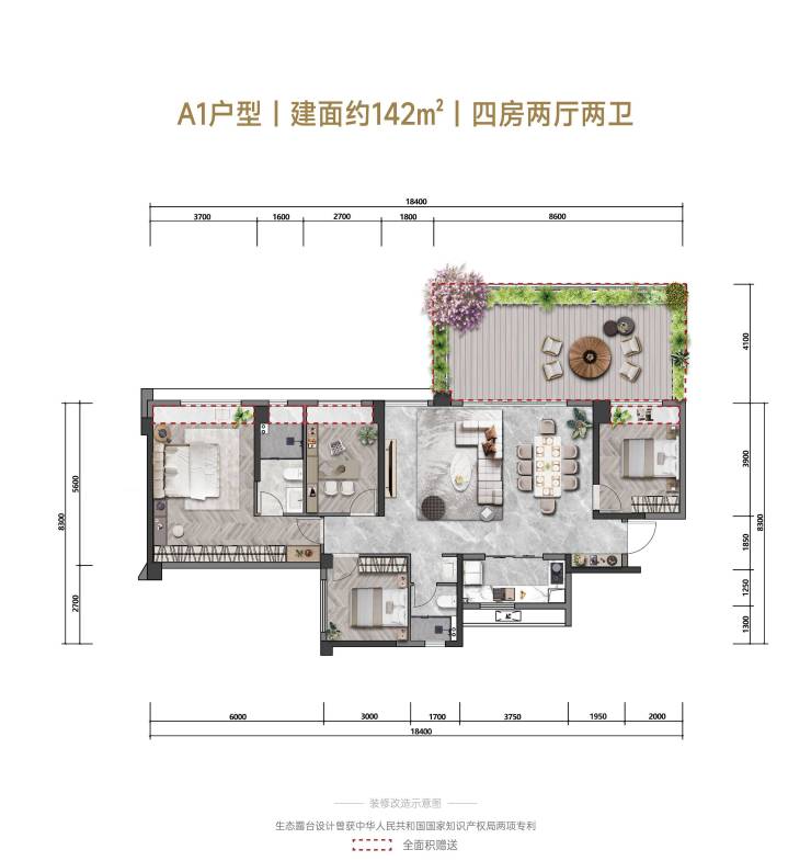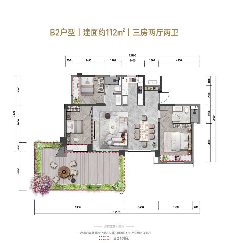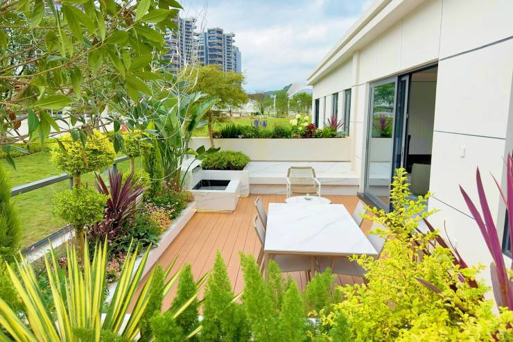 更重要的是,「悦墅」作为生态住宅 4.0版本的再一次进阶,铁建城在聚焦 T4 产品的研发中,突破了生态住宅只有大户型才配置的产品属性,建筑面积最小 112 ㎡,露台赠送面积约 25-42 ㎡ ,露台面积占住宅建筑面积比例高达 35%,在小户型生态住宅的露台赠送实现了前所未有的突破,可以更好的让人们拥有一个属于自己的美好家园,在喧嚣的城市中,享受到轻松、自然、愉悦的生活,拈花弄草,看云卷云舒。