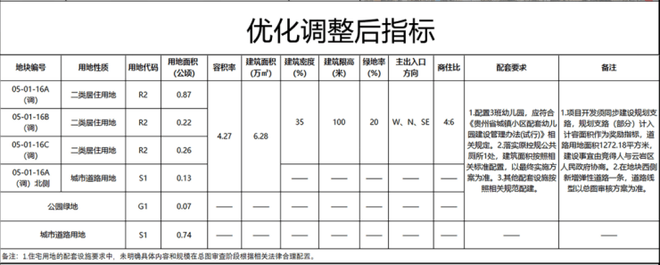 8月29日,贵阳市自然资源和规划局公布了老城05-01-16、05-01-15(局部)、05-01-18(局部)地块规划条件调整方案。