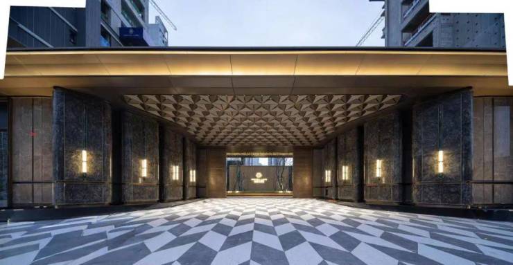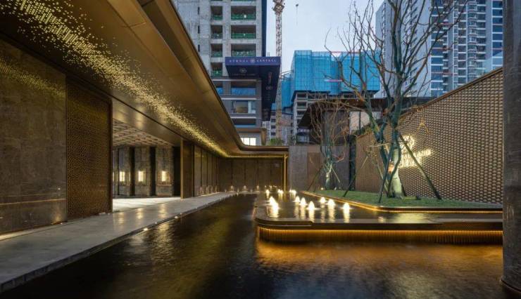 同时,酒店式大门、喷泉水景、下沉式庭院、小区园林等实景展示,大面积石材的运用、龙鳞纹的精致拼装、星空顶等细节处理,也都彰显了项目在品质细节上的极致追求与匠心独运。