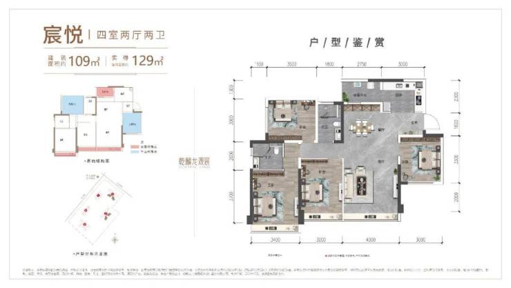 其中,109㎡的平层户型,凭借大量赠送面积,可以做到可变空间的H形竖厅3+1房。并且,即便是最小的房间开间也达到了3米,不仅满足了多样化的居住功能,也确保了空间的宽敞与舒适。