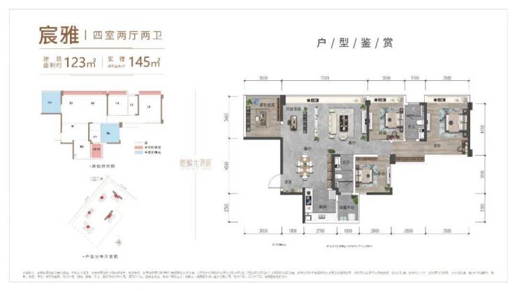 而123㎡的户型,则是3+2房大横厅布局,客厅开间达到了宽敞的7米,奢适度显著提升,采光与通透性更佳。同时,该户型在空间灵活性与多变性上也更为出色,可根据家庭居住需求进行自由调整,为业主提供了更加丰富多彩的生活场景与可能性。