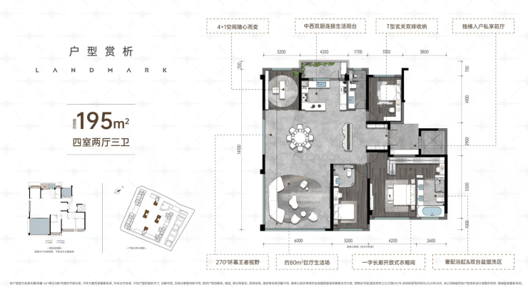 产品:户型精准匹配城市高端改善人群需求,建面约125-195㎡金融城芯地标奢宅,具备优异的空间舒阔感,户户LDKG无界巨厅,环幕视野及星级酒店主卧套房设计。