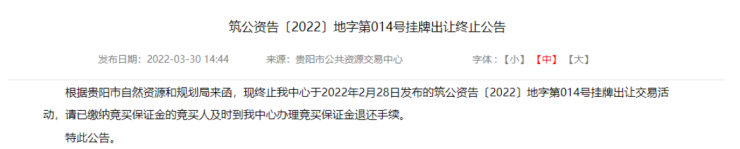 3月30日,随着贵阳市公共资源交易中心一纸公告,原本万众期待的小龙滩地块,最终也没能等来那个「英雄」。
