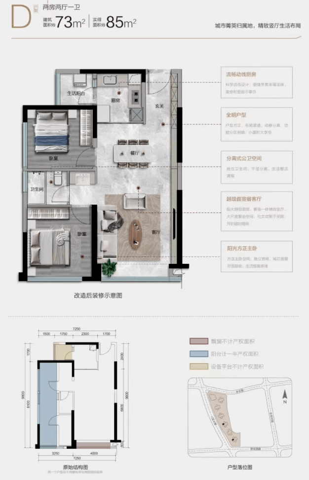 要知道在此之前,老城核心建面73平米和97平米的户型,客厅开间根本不可能达到3.25米和4.2米,同时还带有生活阳台。