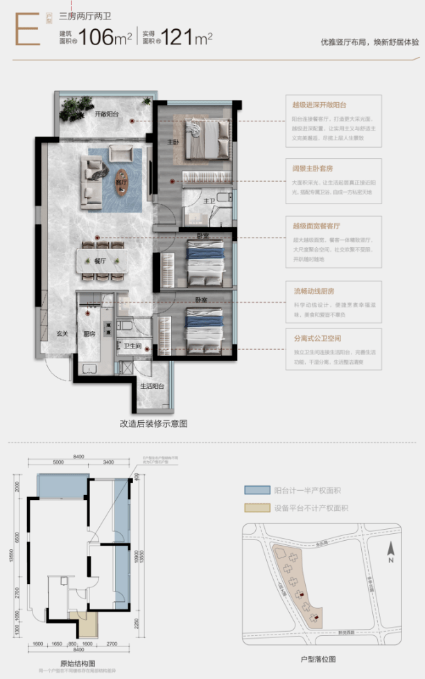 从户型设计方面来看,贵阳城投置业的市场化团队保持了与融翠一致的水准,引入了很多时下流行的设计元素。比如高赠送和阳台报规。