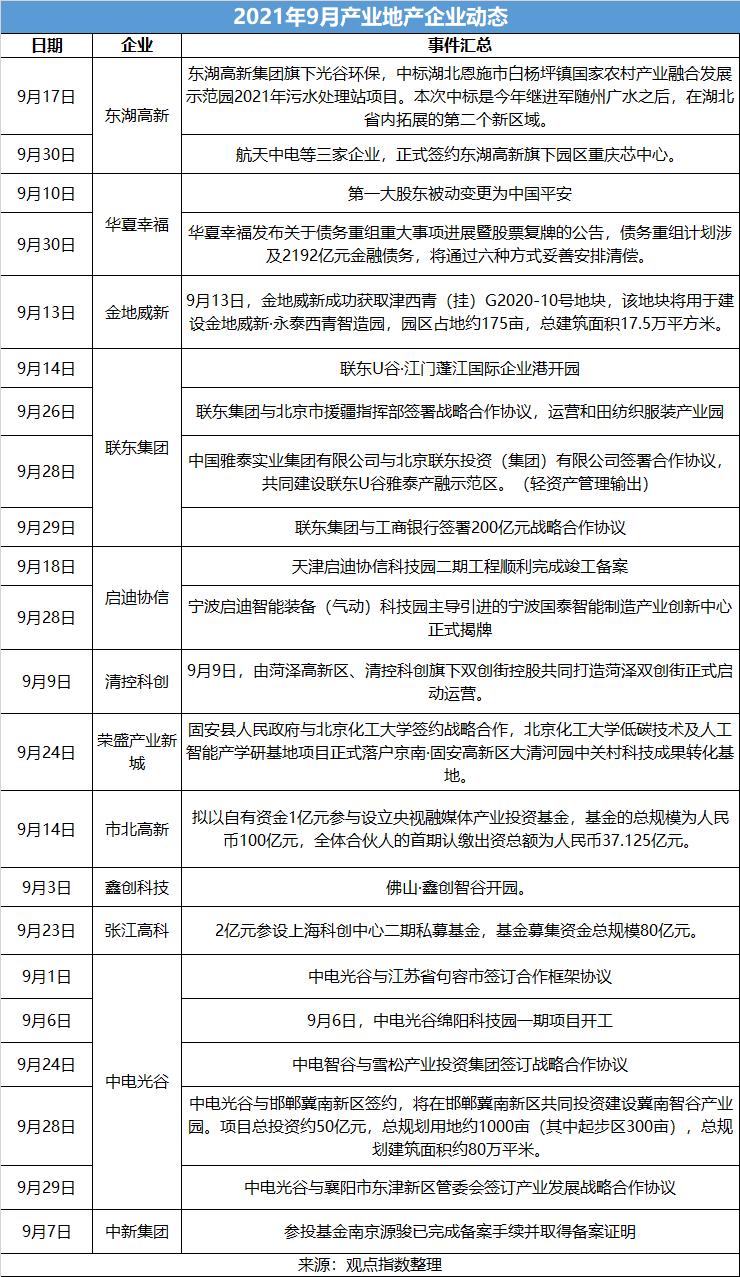 回顾9月份产业地产市场,华夏幸福公布了债务重组计划,涉及2192亿元金融债务的解决方式,有助于支持公司恢复“造血“和正常经营。