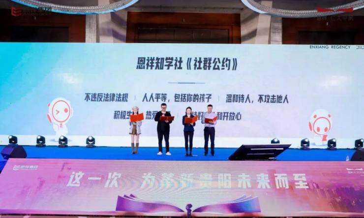 最后,人大附小贵阳共建校龙薇副校长、恩祥丨仁大甲第项目未来业主朋友、贵阳买房帮、黔爸爸联合创始人张初亮先生、云岩恩祥知识城邦邦主熊洋平先生共同颁布了恩祥知学社《社群公约》。