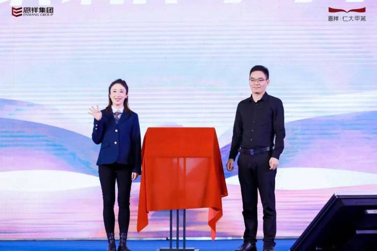 发布会上,中国人大民大学附属小学贵阳共建学校龙薇副校长、恩祥贵阳公司营销总监何建宏先生为“云岩恩祥知识城邦商学院”正式揭牌。