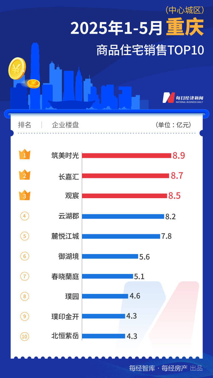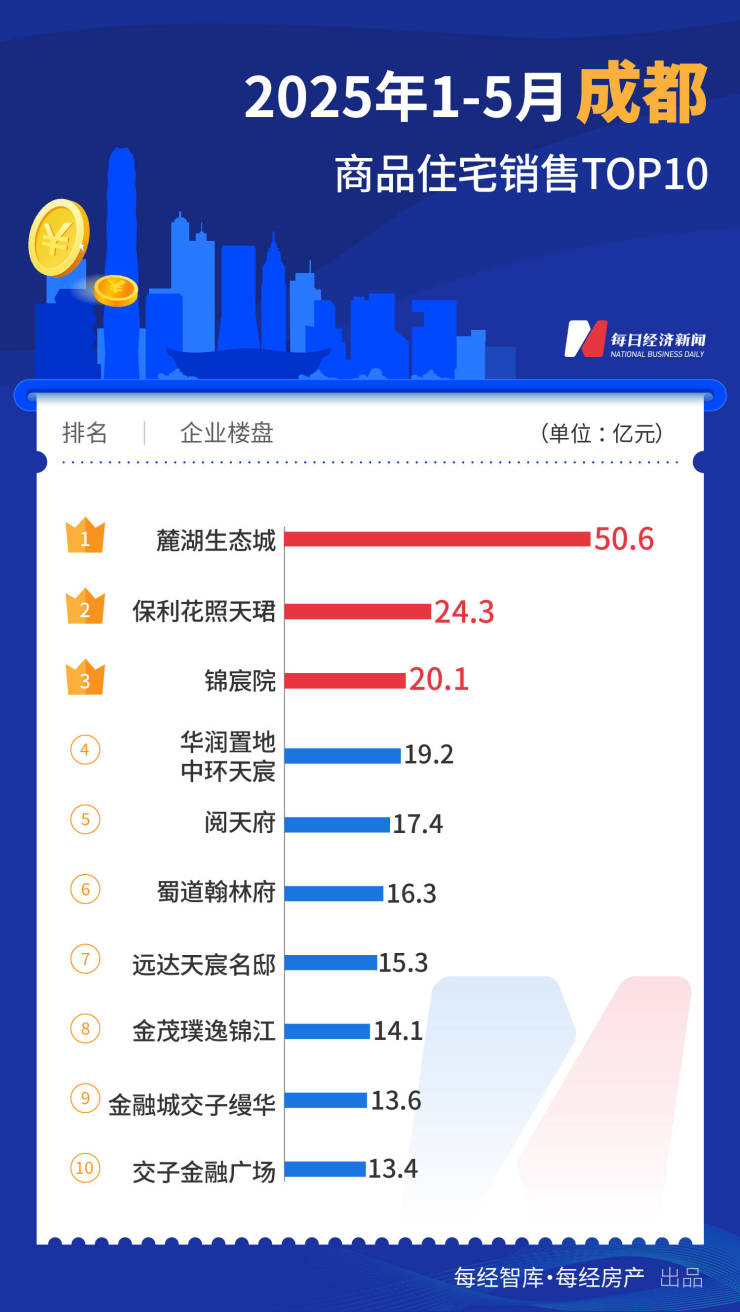 来源:每日经济新闻5月楼市哪家强?据中指研究院,重点城市TOP10楼盘继续由上海领跑,合计销售额达到598.7亿元,几乎是第二名杭州(299.3亿元)的两倍。成都、西安表现强劲,TOP10项目合计成交额分别为…