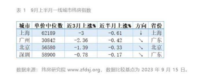 与此同时,据纬房研究院通过对二手房报价的高频大数据监测发现,与8月31日相比,9月15日,上海二手房价下跌0.61%,广州二手房价下跌0.42%,北京二手房价下跌0.33%,深圳二手房价下跌0.17%。也就是在一线城市“认房不认贷”政策落地的半个月内,二手房价并未出现上涨迹象。