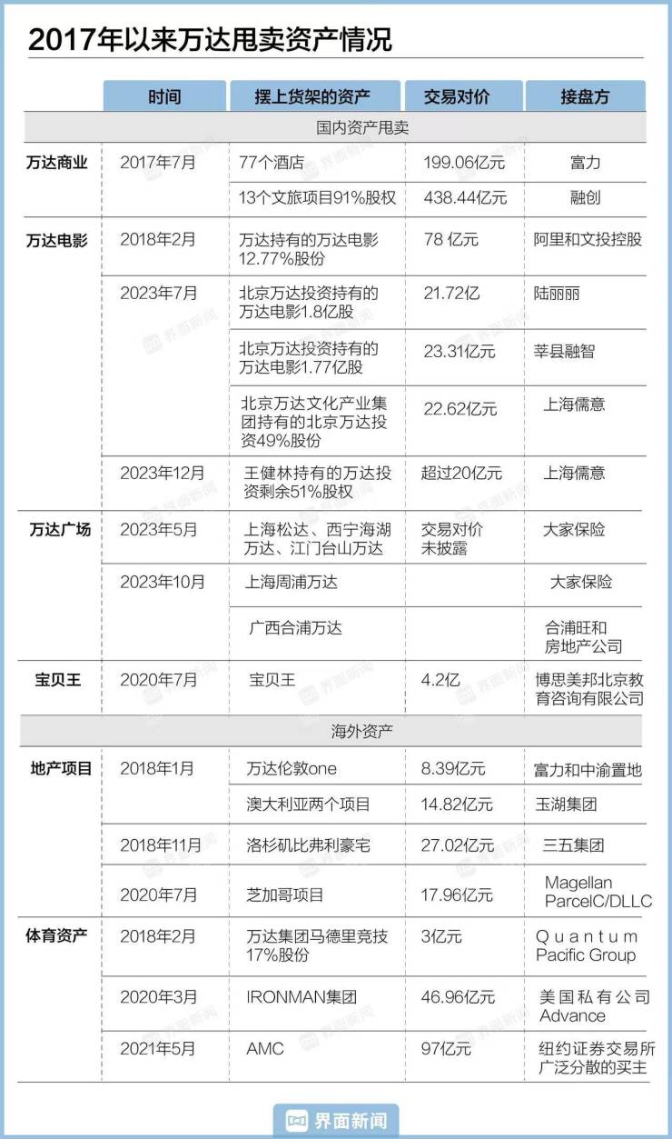 但今年他的态度也变了。一位投行人士对界面新闻表示,年中时,万达就通过投行在卖多个万达广场了,接触买家主要以险资为主。