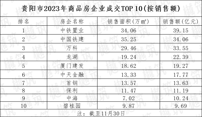 最后,看贵阳房企累计销售榜单,看看房企们在11月份的表现如何。