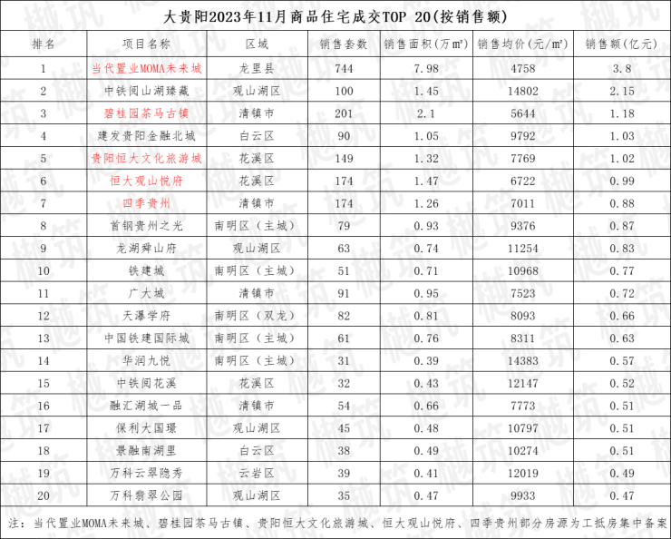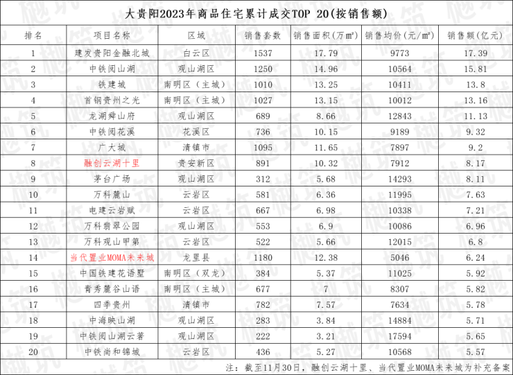 至于大贵阳商品住宅累计销售榜单,则基本都是咱们的“老熟人”,榜单前五大概今年也就这样了。