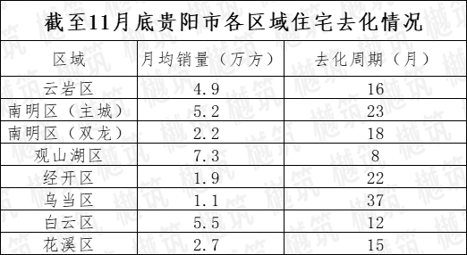 截至2023年11月底,贵阳六区整体去化周期,由10月底的15个月,上升到了如今的16个月。