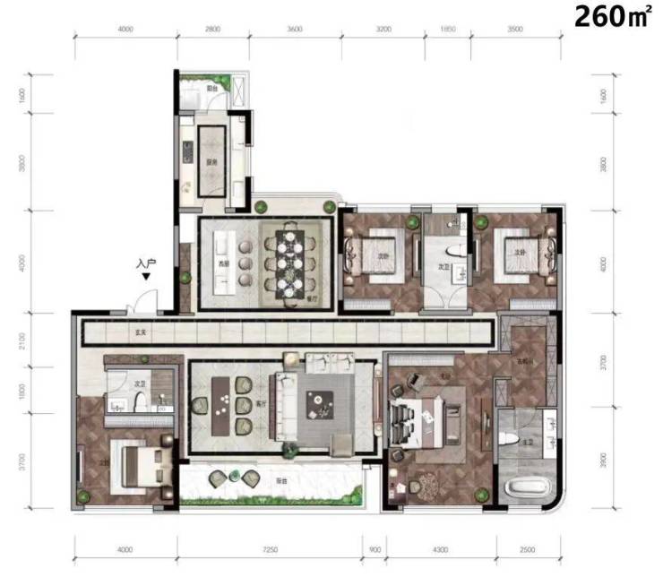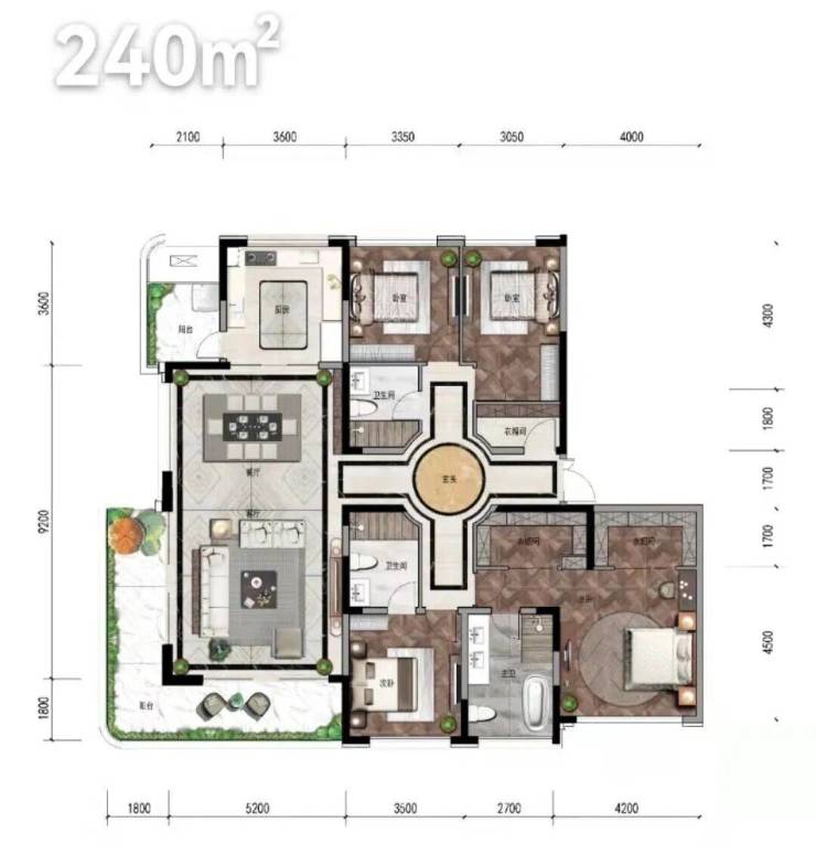 建面240和260平方米的毛坯户型,售价区间为10300-10800元/平方米。