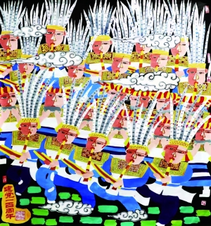 水城农民画,创作者主要是苗族,以农民为主,所创作的作品主要反映农村的生产生活和民俗风情,淳朴、直率、豪放、粗犷。从1983年走出水城,已成为贵州的一个文化品牌。水城农民画以其自由、夸张、色彩艳丽的艺术形式和古朴、幽香的民族气息以及大胆、泼辣的艺术手法,集民间蜡染、刺绣、贴花、剪纸等民间艺术为一体,展现了独特的魅力和风采。