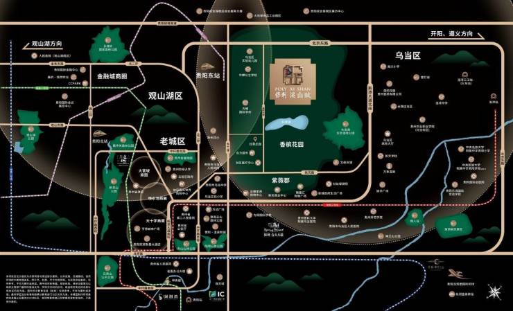 溪山赋项目近邻贵阳东站,坐拥北京东路、北二环与东二环的立体路网,可以快速通达观山湖核心区,连接老城区繁华,真正实现了“离尘不离城”的地理优势,满足精英人群对城市资源的高效需求。