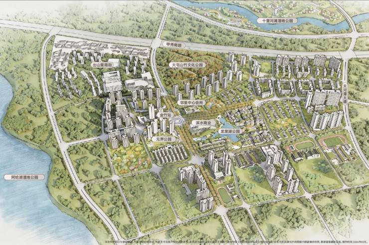 项目外,4A阿哈湖国家湿地公园、4A十里河滩湿地公园、花溪公园、4A天河潭旅游度假区、金竹大屯山竹文化公园五大公园环抱,占尽一城山水,浸润大城的生态底色。