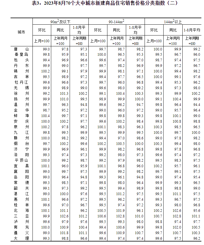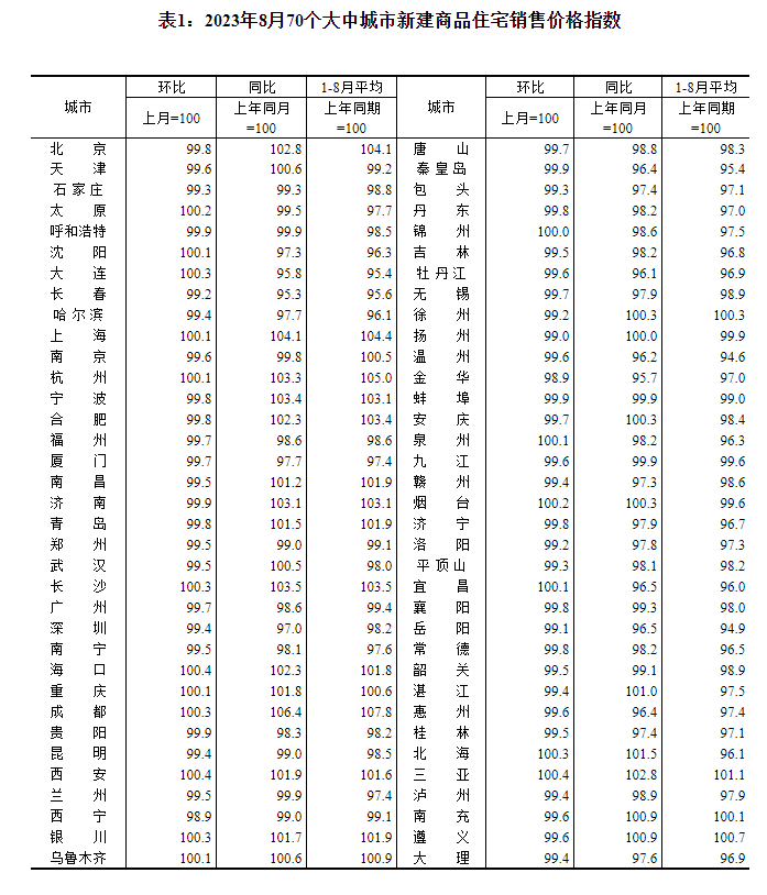 国家统计局:8月份70城商品住宅售价同比有涨有降