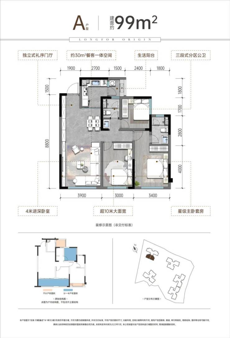 二是所有房间开间都超过3米,这也是龙湖近期设计户型非常注重的要点。