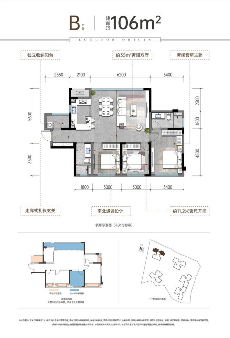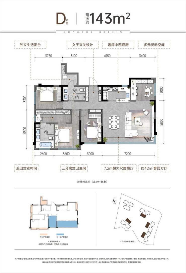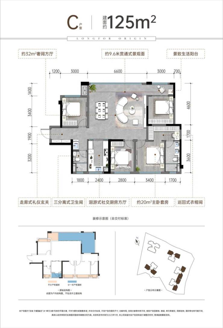 户型设计方面,虽说在新规下没法再做类似观山西那边的绝高赠送户型了,但总体而言四个户型都还做得不错,赠送率都比较高,同时功能性也兼顾得比较好。