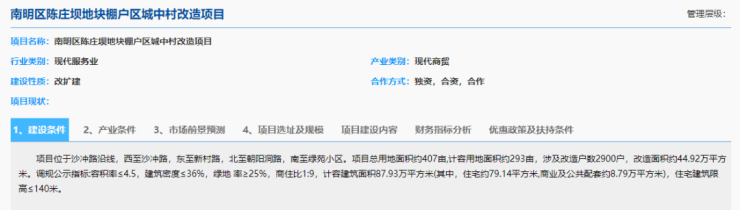 11月30日,据贵州省投促局官网公示信息,南明区陈庄坝地块棚户区城中村改造项目已被纳入省投促局招商项目库,拟进行公开招商。