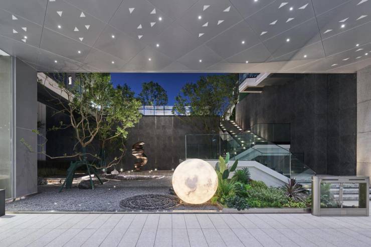 从入户大门径直而入、拾级而上,遇“鉴”中庭空间,尽享精彩时光,体验向往的生活。明玥半山依据地块特点,打造十字轴线,串联场地空间,双大围合中庭空间,承载肆意童年的阳光草坪和沉思闲谈的林下会客厅、萌宠乐园、康体活动场地、羽毛球场地、邻里花园……