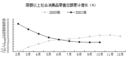 10月,全市限额以上社会消费品零售额97.08亿元,同比增长2.3%,增速由9月下降4.1%转为正增长,增速高于全省1.7个百分点;1-10月,限额以上社会消费品零售额810.54亿元,同比增长1.6%,增速低于全省6.7个百分点,与1-9月持平,两年平均增长8.6%。今年以来,限上社会消费零售额累计增速首次止住下滑趋势。