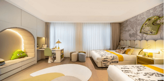 同时,观棠的户型实现了无柱化次卧区,去除冗余结构柱。比如在138㎡盛棠户型里,约6米大面宽双联空间+南向宽窗可根据需求灵活切换,既可以是孩子的阳光书房+亲子游戏区,也能升级为长辈的朝南套房,实现生活更多的空间想象。