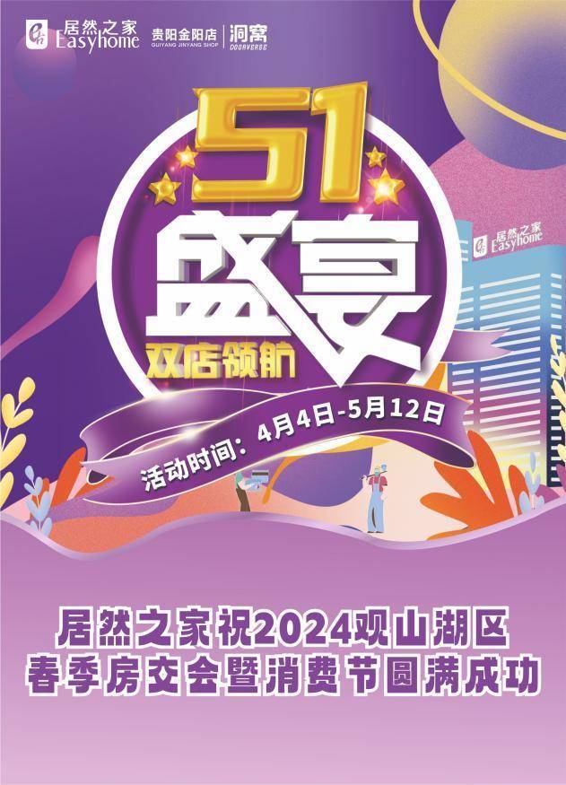 居然之家消费节、五一节大促已经开始!4月4日-5月12日,双店领航、双节盛宴,多重福利聚惠来袭。不但有金条、飞天茅台购物抽;大疆无人机、华为Mate 60 Pro+满额无限壕赠;50元抢购100元加油卡;下定送万元加油卡;联单有礼、华为电脑等您赢;还有以旧换新、内购品牌爆品限时抢;更多惊喜福利,尽在居然之家贵阳金阳店!