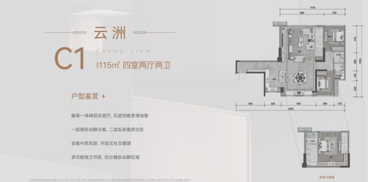 总的来说,115㎡户型南北通透,加上大面积采用落地玻璃窗,空气能够实现对流,达到最舒适的居住条件。另外通过超过50%的赠送率,压低建筑面积,做到了同尺寸竞品完全无法想象的空间,为市场带来了一个优质的跃层户型模板,满足城市现代家庭对舒适改善型户型的需求。