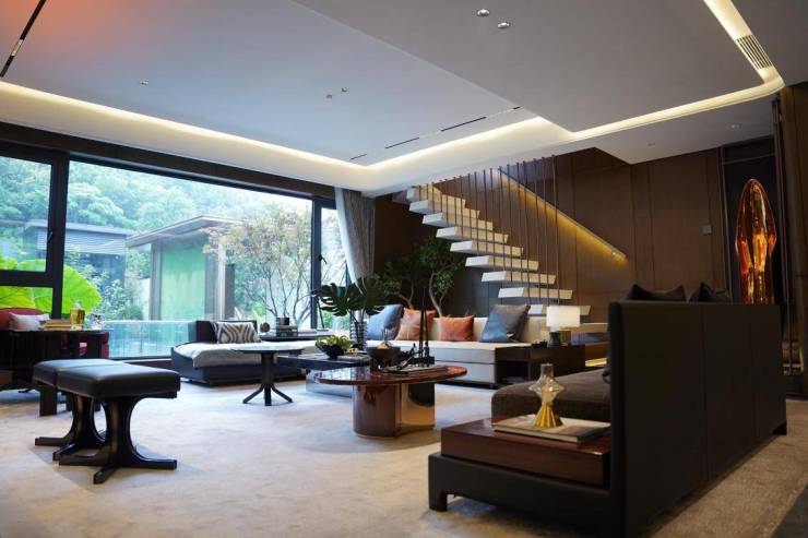 并且,整个面积达到了近40㎡宽敞的客厅,还配上了IMAX巨幕落地玻璃窗增加采光,不仅拉伸了整个空间的尺度感,同时还丰富了室内的立体感,以及最大化提升观景效果。更值得一提的是,次卧室也设计了大面积的落地窗,保证了房间的通风和采光,而近40㎡的大主卧区内,更是奢华大气兼顾实用,带来品质生活的尊贵感。