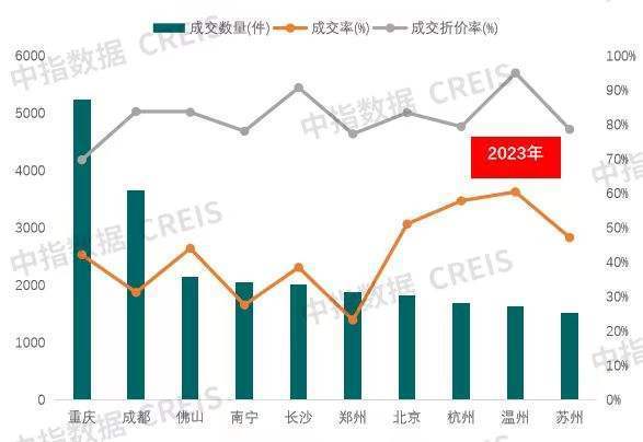 根据国信达数据、纬房研究院联合发布的2023年1-12月全国法拍房大数据分析报告显示,2023年,40个大中城市挂拍量较高的城市是成都、重庆、郑州、南宁、昆明,挂拍量分别是1.94万套、1.73万套、1.02万套、6757套、6017套。其中,法拍房平均报名人数较多的城市分别是上海、温州、北京、深圳。
