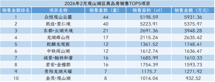 区域和项目方面,2月份的梯度分化也是非常明显,观山湖区一骑绝尘,老城白云紧随其后;